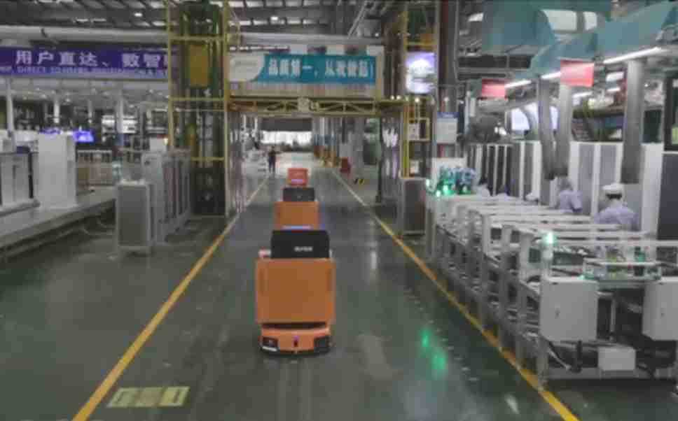 为车载冰箱物流配送打造的智能解决方案,,包含产中物流通过潜伏举升AMR搬运至线边,,,产后成品物流智能仓储,,流程包含产中物流智能齐套入库,,,线边安灯叫料AMR智能配送至线边,,,成品入库、、出库,,通过无人堆高车机器人,,,,智能仓储管理替代人工作业管理,,,,实现更高存储、、更高效率、、、更具柔性化的解决方案。。。