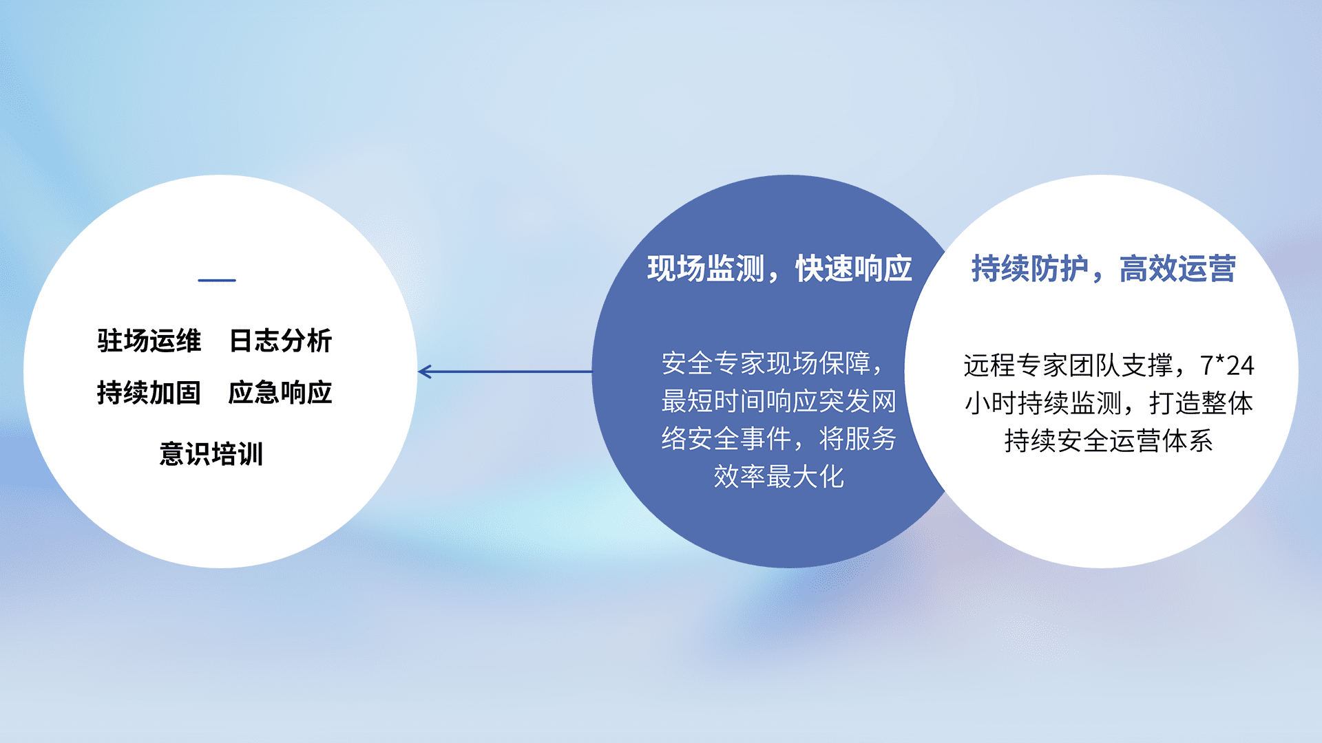 7X24小时持续监测安全事件,保持安全策略有效性,降低资产脆弱性风险,,,精准拦截黑客攻击,,,,减少被黑客利用的机会,,,,第一时间遏制,,,降低损失。。。。